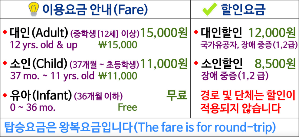입장료는 중학생 14세 이상 어른 15000원, 초등학생까지 11000원, 국가유공자 등 12000원, 장애인 8500원, 36개월미만은 무료입니다.