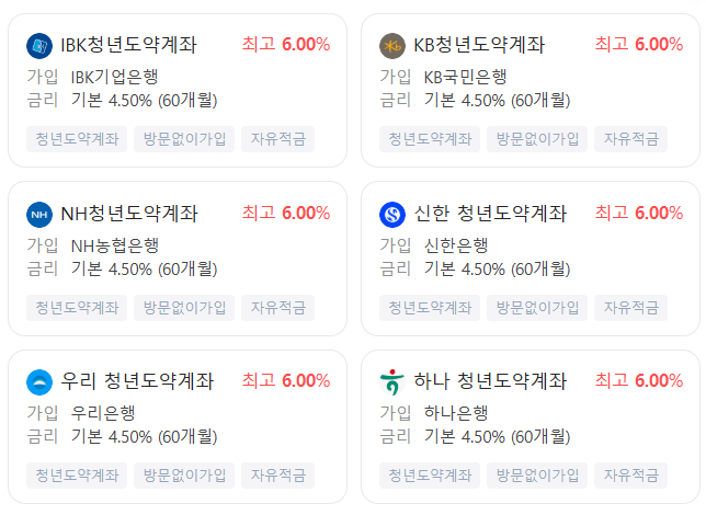 아래 그림처럼 시중 은행 검색을 해보면 최고 6%금리로 하는 적금입니다.