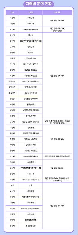 청년 면접 준비 지원 사업 지역별 운영 현황