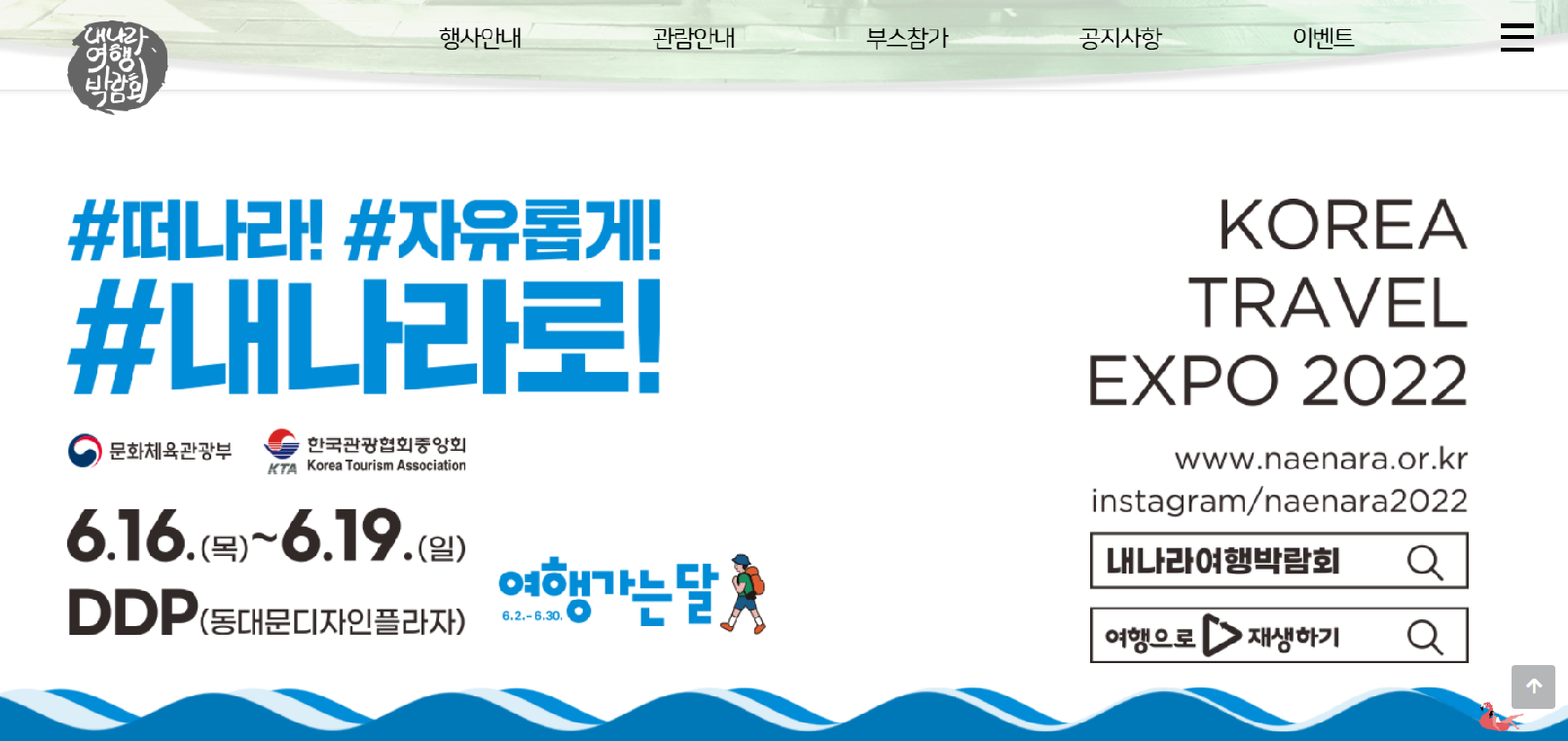 2022 내나라 여행박람회 공식 홈페이지(http://naenara.or.kr/)에 가시면 첫 팝업이 뜹니다.