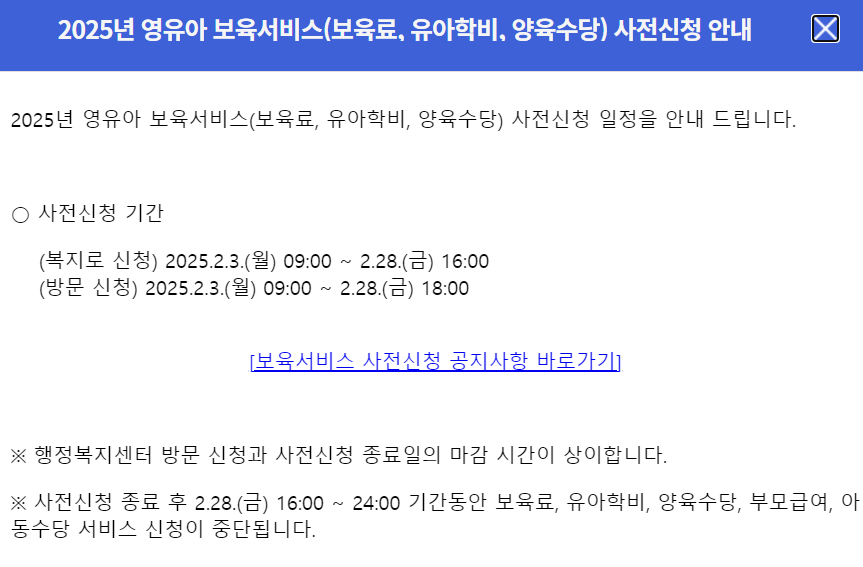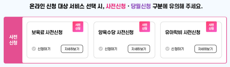 25년 보육료, 유아학비, 양육수당 사전 신청